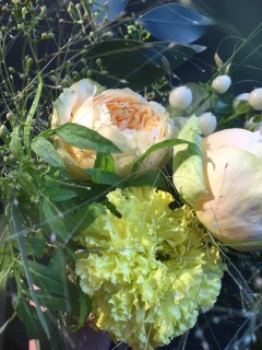 爽やかな色味のお花やグリーンを使用し、ミニブーケを作ります。