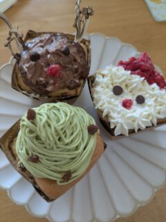 焼きあがったカップケーキの上には、生クリーム・豆乳クリーム・チョコクリームを使って自由にデコレーション