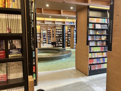 「読書の谷」カルディーコーヒーファーム様側、文庫売り場内の円形ソファです。