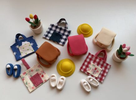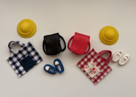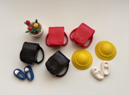 ランドセルと上靴、帽子を樹脂粘土で、