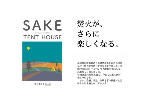 北海道小樽 酒商たかの×高知 酔鯨酒造の共同開発により、キャンプで極上を味わう焚火専用日本酒「SAKE TENT HOUSE」が誕生しました。