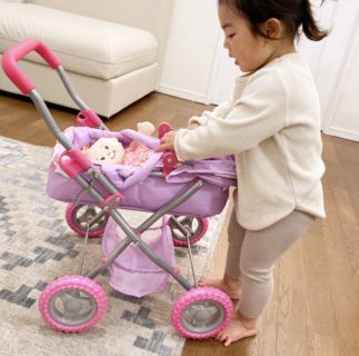 本物そっくりの”自分専用”のベビーカーにステラを乗せてお散歩がはじまります。