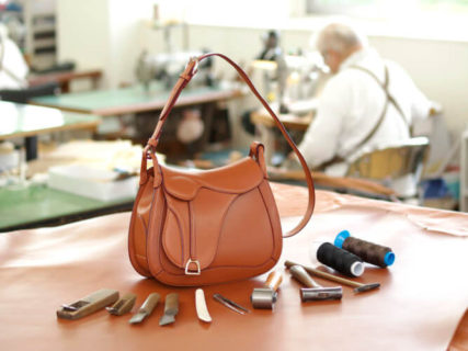 北海道・赤平市、自然に囲まれた工房の中、職人の手作業で作られるバッグや革小物。