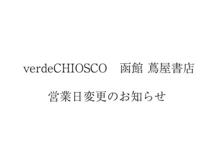 いつも verdeCHIOSCO 函館 蔦屋書店 をご利用いただき、誠にありがとうございます。