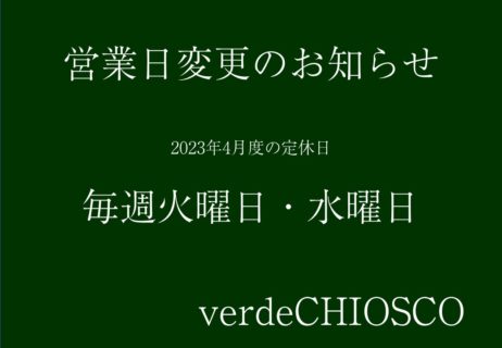 - 『verdeCHIOSCO』 函館 蔦屋書店 営業日変更のお知らせ