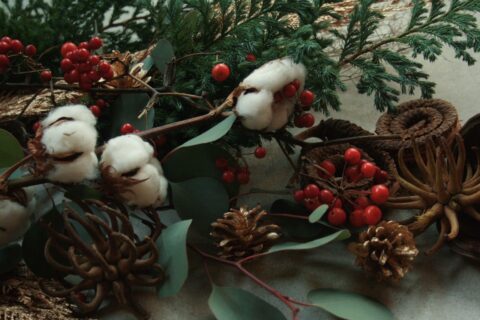 季節のお花に合わせて、クリスマスに似合う枝物や実物をご提案いたします。