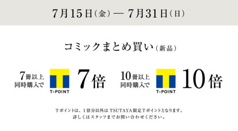 ・7冊以上同時購入でTポイント7倍(1倍+TSUTAYA期間限定6倍)