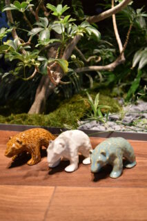 木彫りの熊をモチーフとした陶彫りの熊の置物や、陶器の周りにビーズ刺繍をあしらったイヤリングなど、陶器ならではのほっこりとあたたかな雑貨をご紹介いたします。