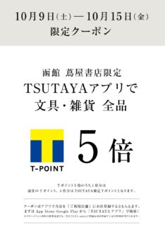 函館蔦屋書店文具・雑貨 TSUTAYAアプリでポイント5倍キャンペーン 10/9~10/15