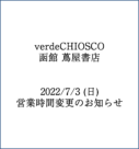 『verdeCHIOSCO』 函館 蔦屋書店 営業時間変更のお知らせ