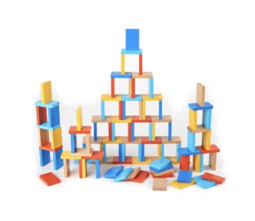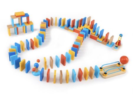 ピースを並べて一気にたおす「ドミノ倒し」を、たっぷり100枚のピースで。