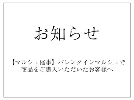 - 【お知らせ】「バレンタインマルシェ」にて商品をご購入いただいたお客様へ