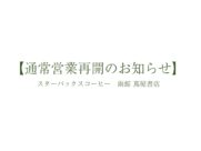 1/22(金)スターバックス コーヒー函館 蔦屋書店【通常営業再開のお知らせ】